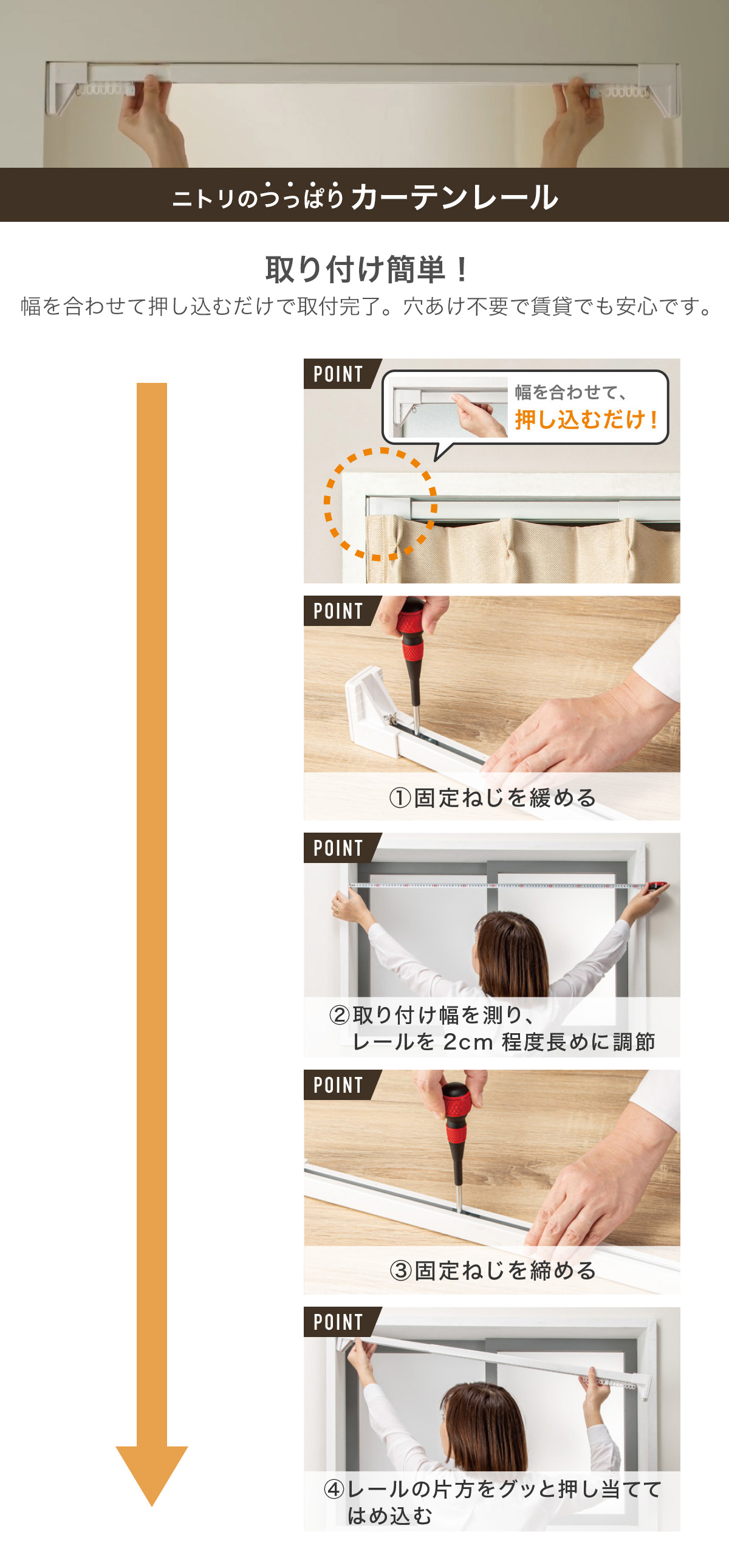 つっぱりカーテンレール伸縮式(TR1 WH 75-110cm) ニトリ期間限定:4/6迄