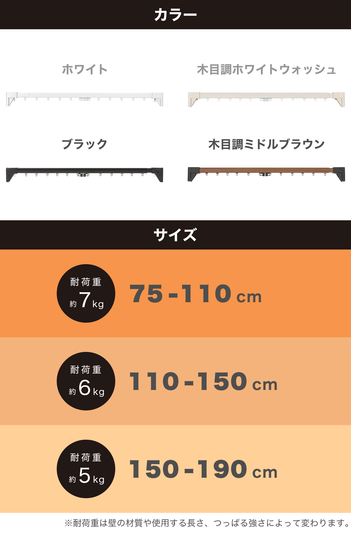 ※耐荷重は壁の材質や使用する長さ、つっぱる強さによって変わります。