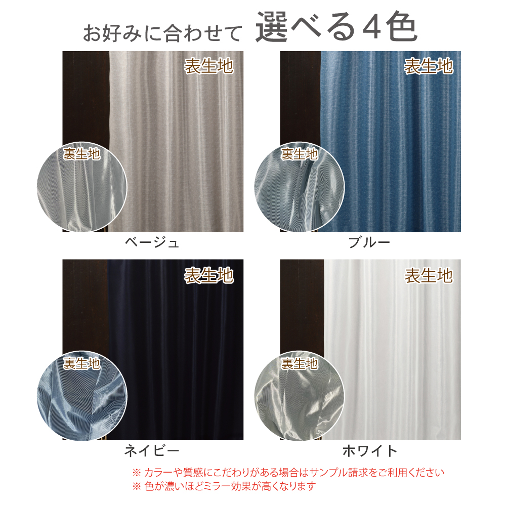 マジックミラーレースカーテン。生地の窓側には光を反射しやすい素材を使って、屋内側には特殊なプリント加工をして、さらに外から見えにくい商品になりました。(色が濃いほどミラー効果は高くなります)