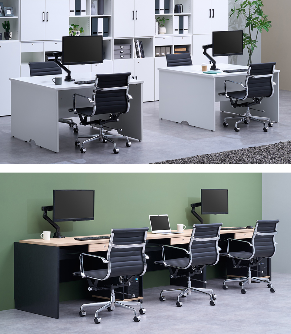 滑らかな曲線や機能性はそのままに、視界をさえぎることなく、オフィス空間やホーム空間をすっきりと見せる高さのローバックタイプ。複数並べても圧迫感が少なく、よりコンパクトにご使用いただけます。