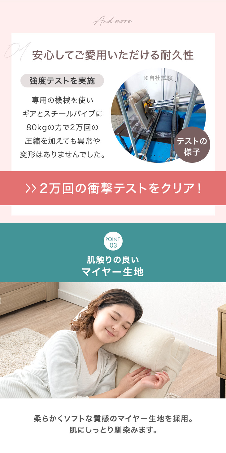 中材:PP綿、低反発チップウレタン(50D)、ピュアウレタン(16D)、スチールパイプ