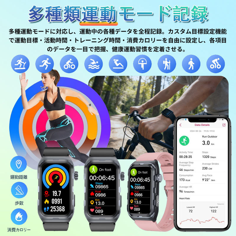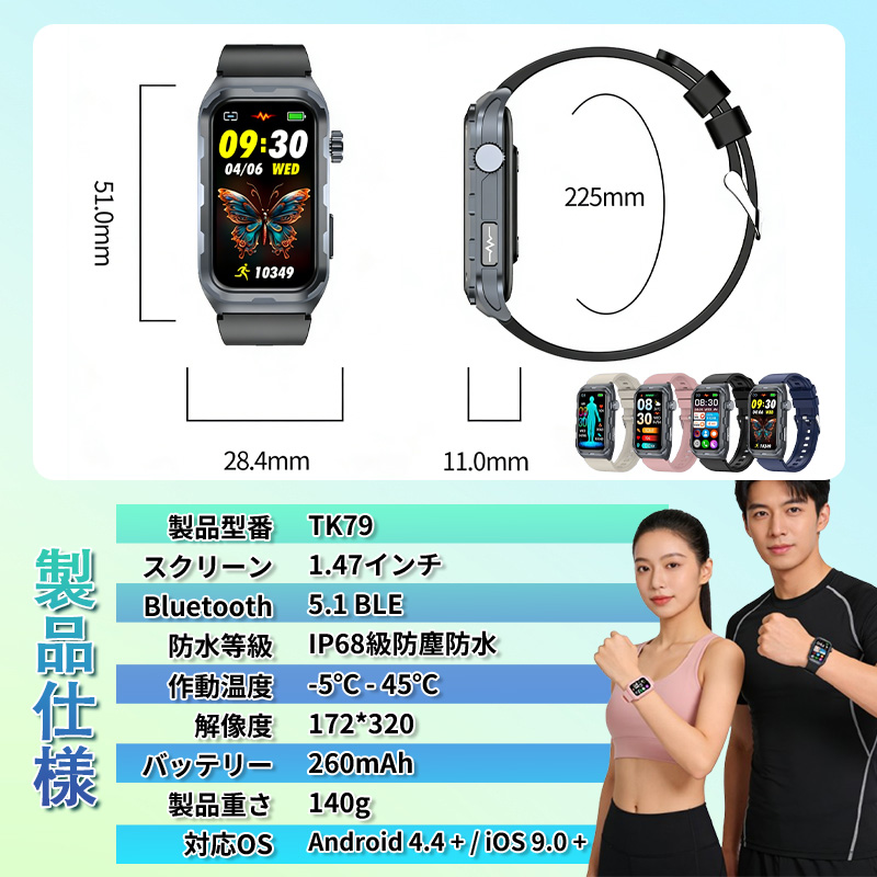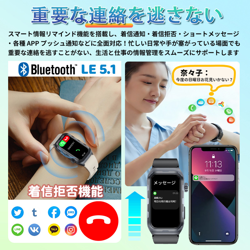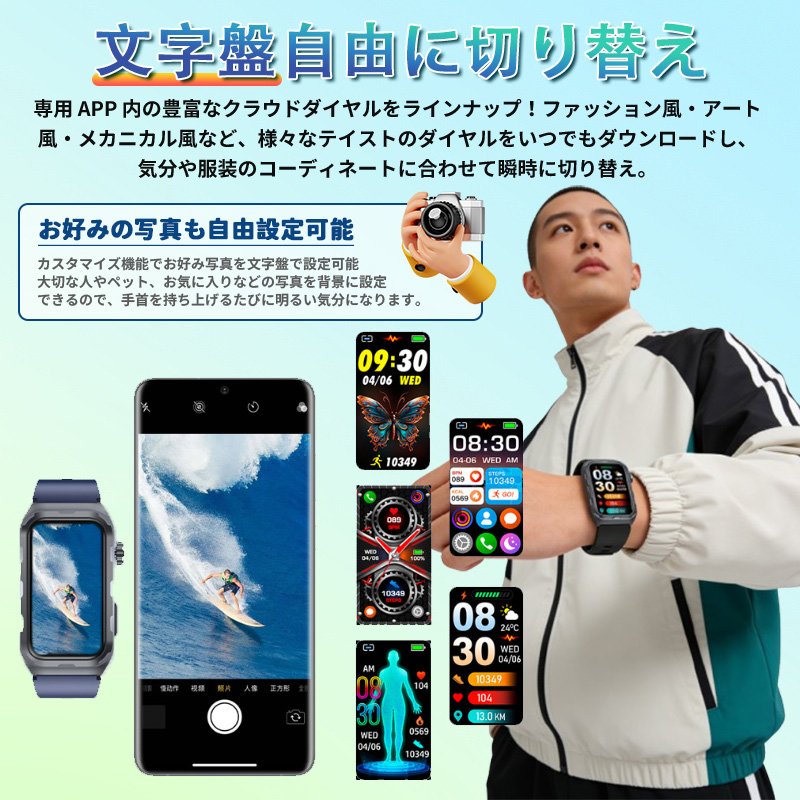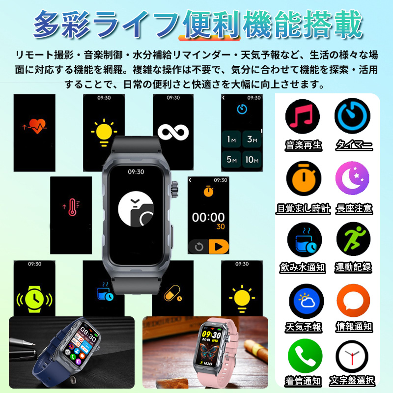 スマートウォッチ 日本製センサー 血圧測定 心電図 心拍数 血中酸素 睡眠管理 体温 睡眠 着信&LINE通知 天気予報 音楽再生 カメラ制御 長座注意 歩数計 SOS機能
