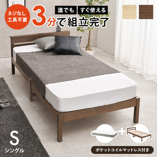 ベッド ベッドフレーム シングル 収納 すのこベッド シングルベッド 宮付き コンセント付き すのこ ベット 組み立て簡単 工具不要 耐荷重150kg ネジレスライト
