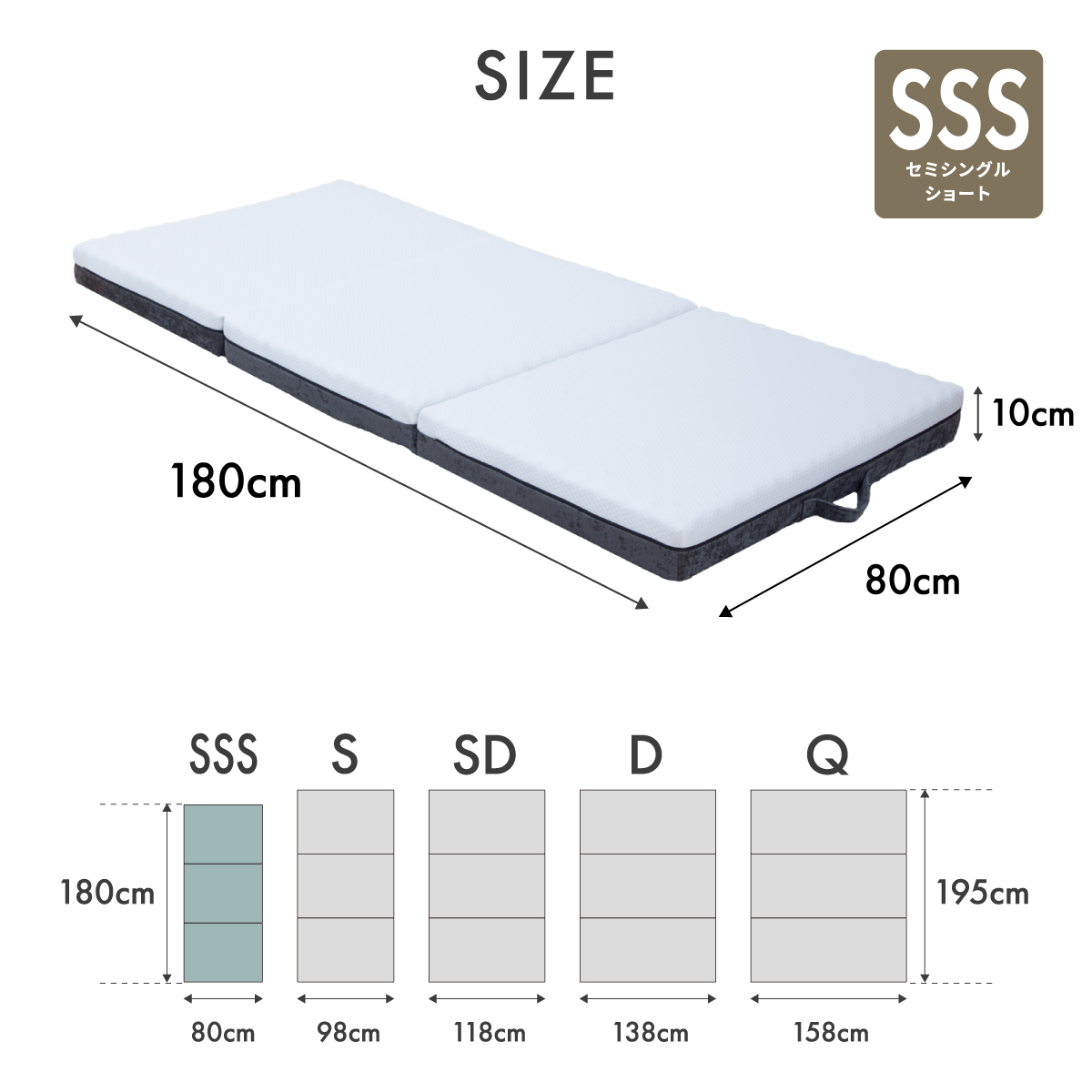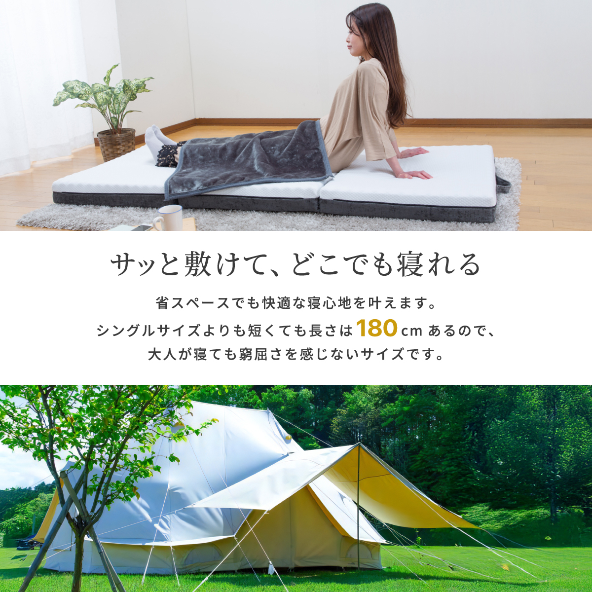 ・寝心地、耐久性、価格、全てにおいて優秀なパフォーマンスを目指した10cm厚3つ折り敷布団型マットレスです。
