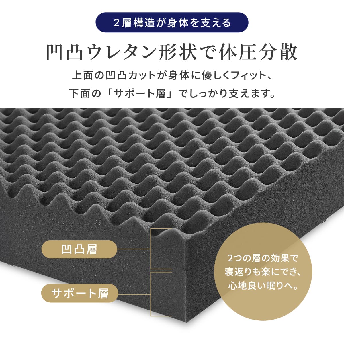 ・上面のやさしいフィット層に加えて、下面のしっかりサポート層による2層構造が快眠の秘訣です。