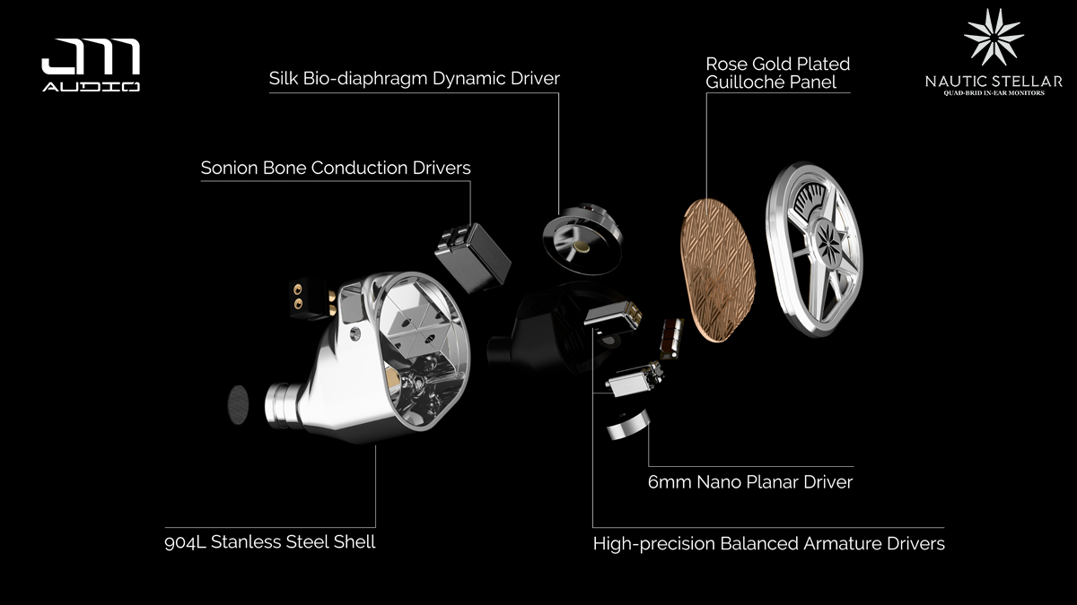 Nautic Stellarは、片側8基のドライバーを搭載し、時計製造の最高峰技術「ギョーシェ彫り」を大胆に採用することで、Jomo Audioのクラフトマンシップが新たな境地を切り拓いた、「MarineSeries」のフラッグシップモデルです。ブランドが誇る洗練されたデザインに、シルクバイオ振動板ダイナミックドライバーやアップグレードされた骨伝導ユニットなど、革新的な音響技術を凝縮。深海の静寂から満点の星空の輝きまでを描き出すかのようなリスニングの常識を覆す、異次元のサウンドをお届けします。