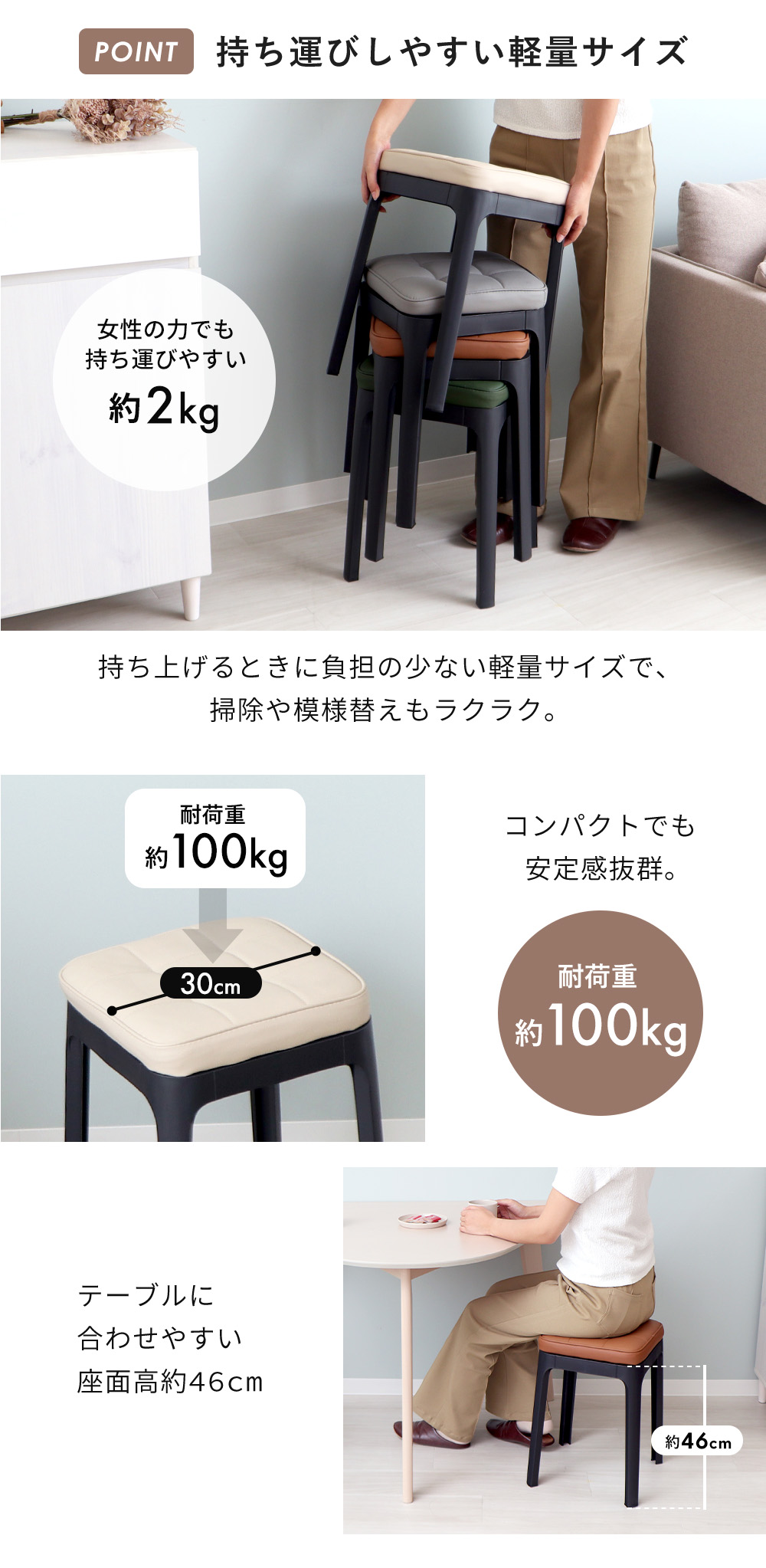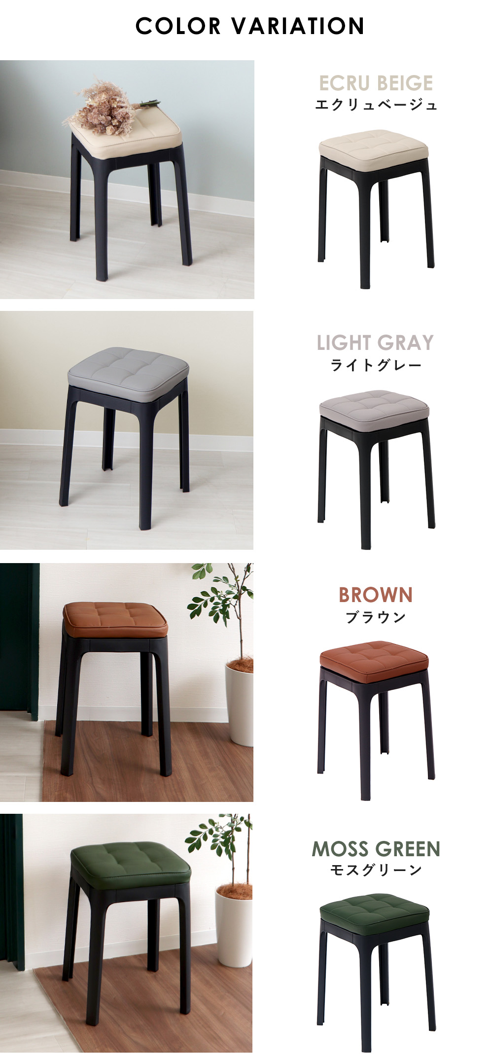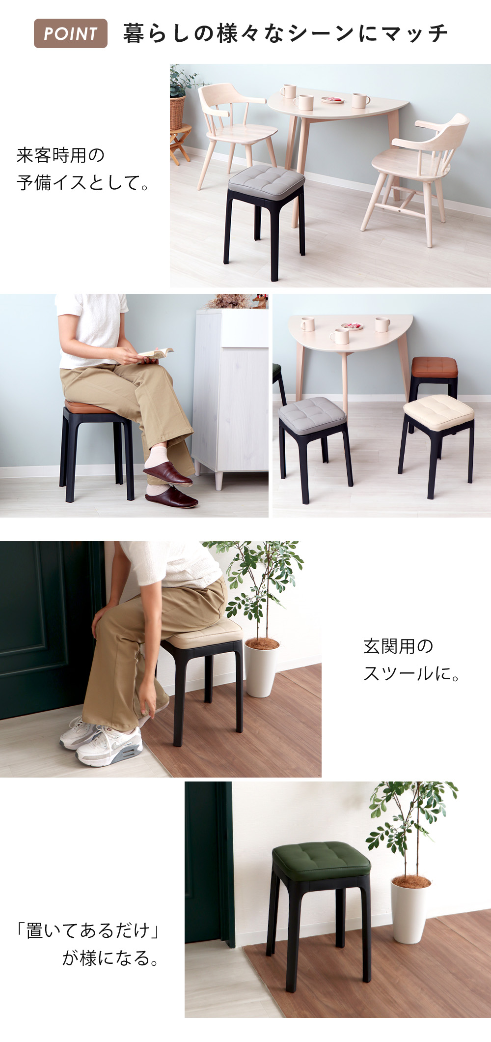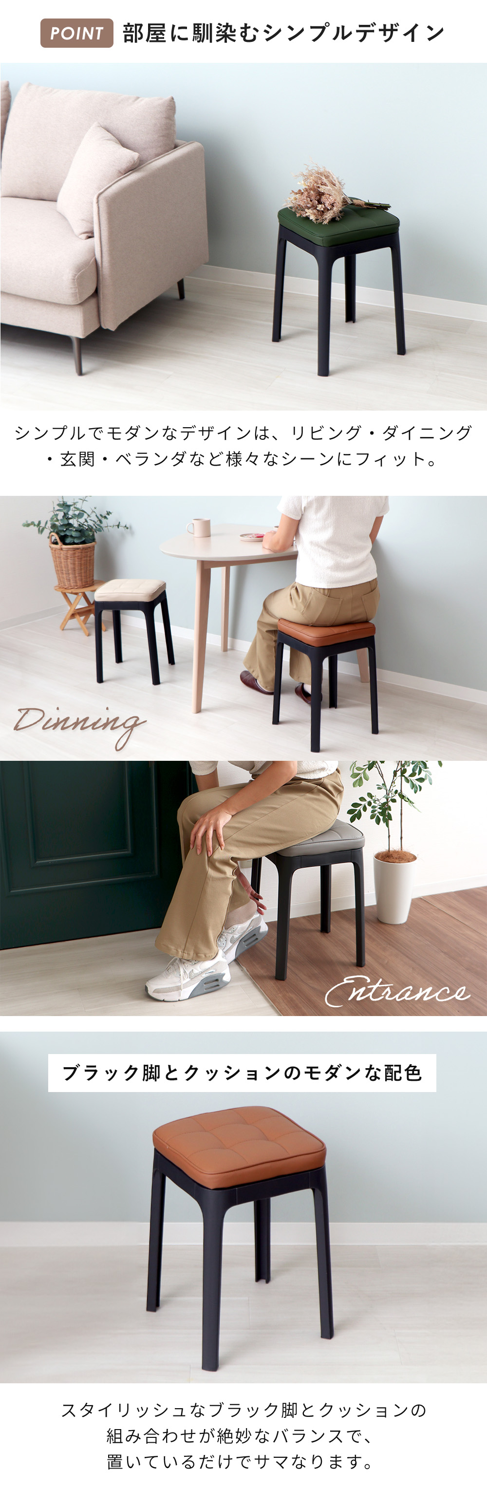 スツール 収納 椅子 スタッキング 4脚 セット チェア イス 四角 玄関 ダイニング キッチン リビング 軽量 クッション 北欧 パトン Paton