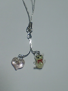 蓄光ガラス 携帯ストラップ ミニクマ&ハート