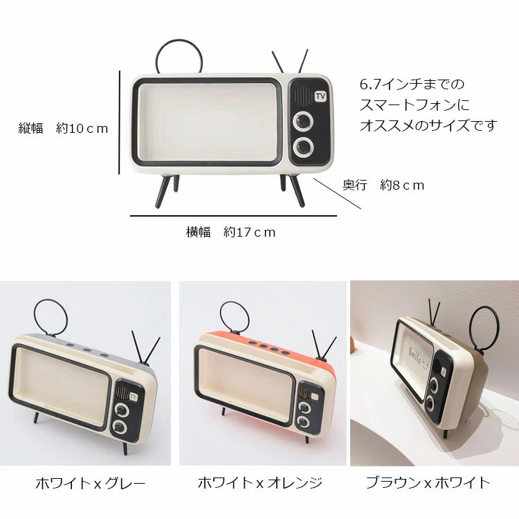 レトロ TV型 スマホスタンド スマートフォン スタンド iPhone Android 全機種 対応 インテリア お洒落 雑貨 かわいい シック テレビ 動画視聴 ハンズフリー