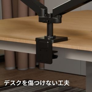 横並び配列のデュアルモニター環境にぴったりなモニターアームです。使用しないときはコンパクトに折りたため、デスクを広く使えます。