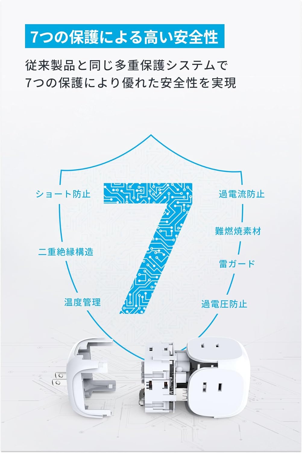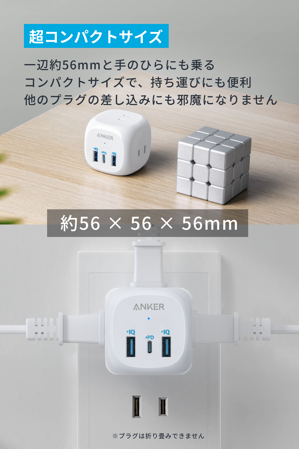 6-in-1, 超コンパクト 電源タップ アンカー 充電 複数 6 ポート