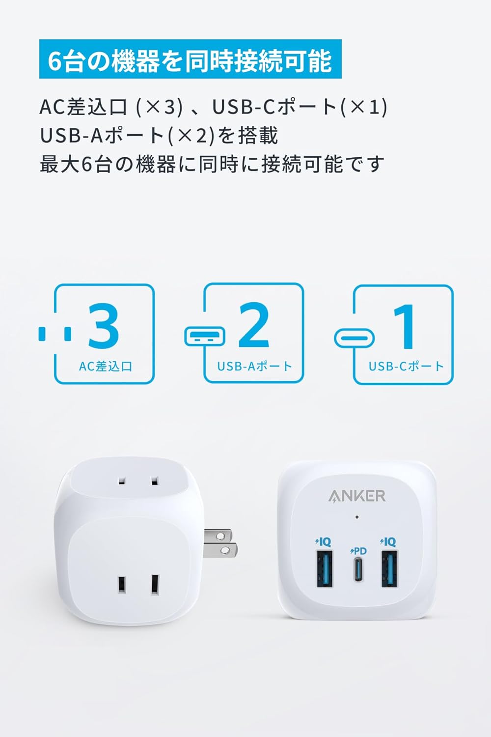 Anker PowerExtend (6-in-1)(USBタップ 電源タップ AC差込口 USB-Cポート USB-Aポート) 【PSE技術基準適合/USB Power Delivery対応/コンパクトサイズ】MacBook