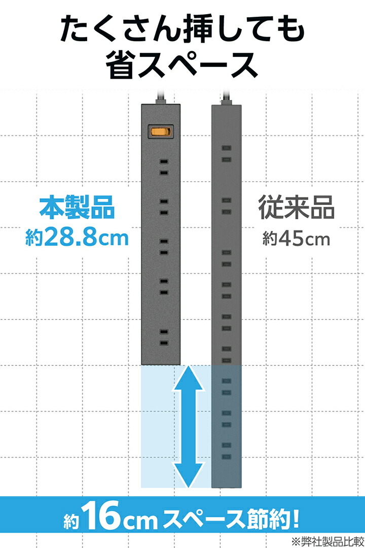 ●差込口を2面に分けて配置することで、10個口でありながらコンパクトになっています。