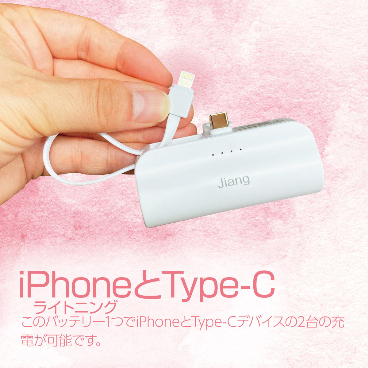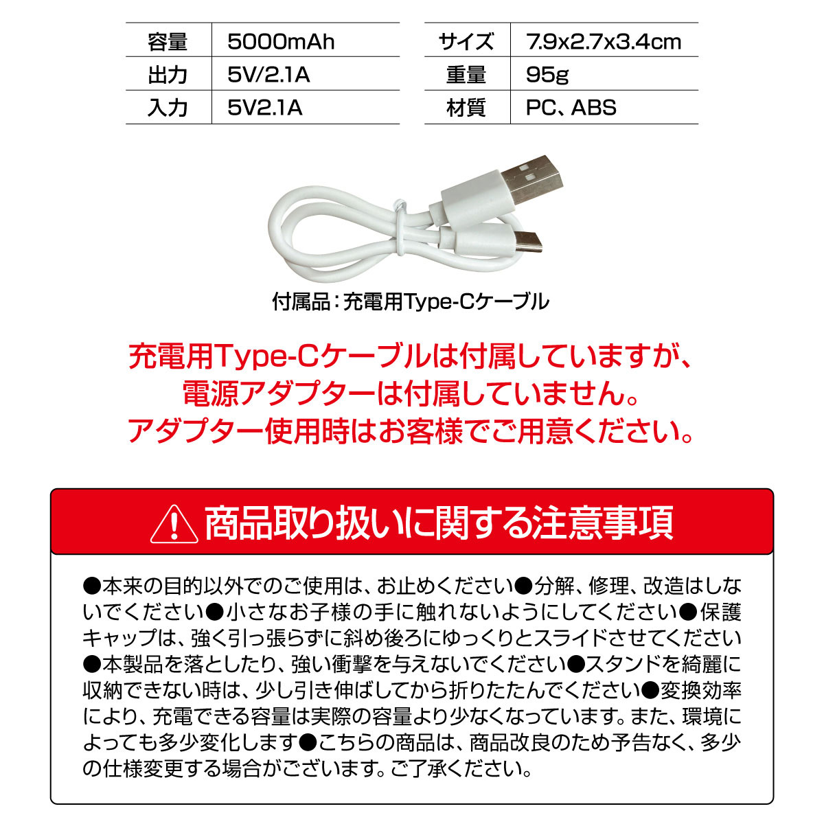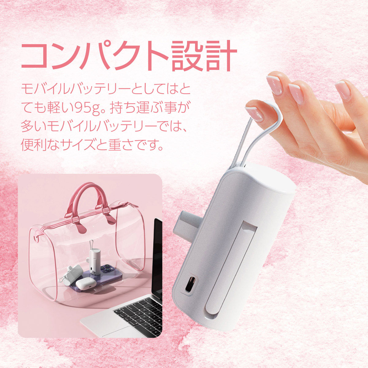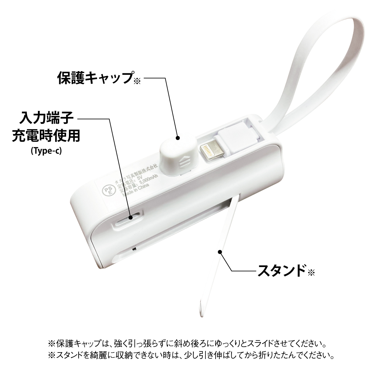 爆買 大容量 モバイルバッテリー 飛行機OK 軽量 便利 ケーブル内蔵 5000mAh コンパクト iPhone Android タイプC ライトニング mini-battery