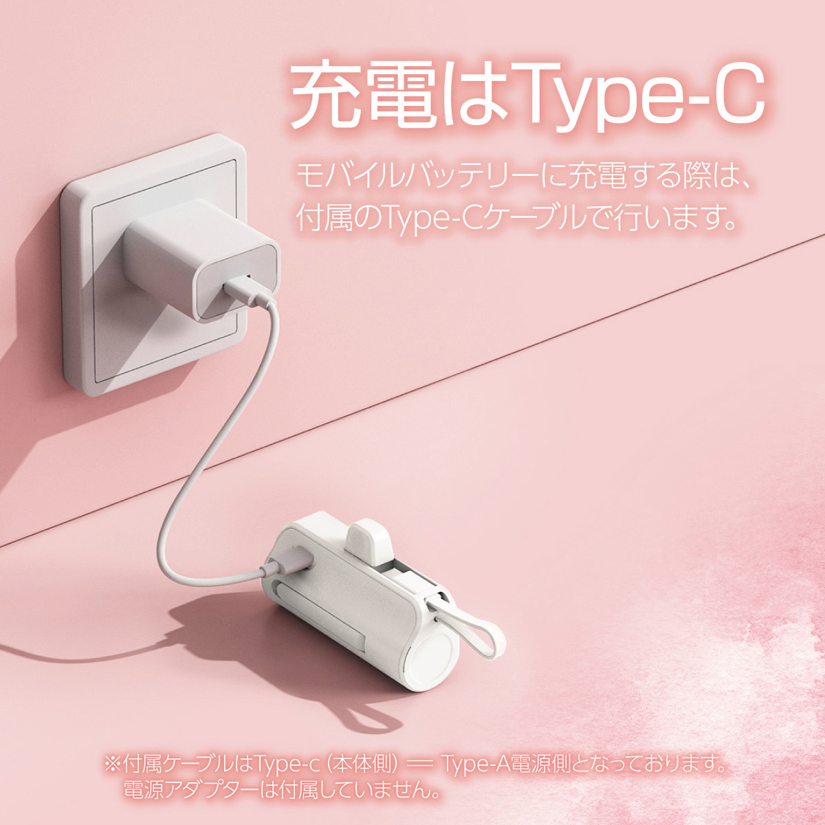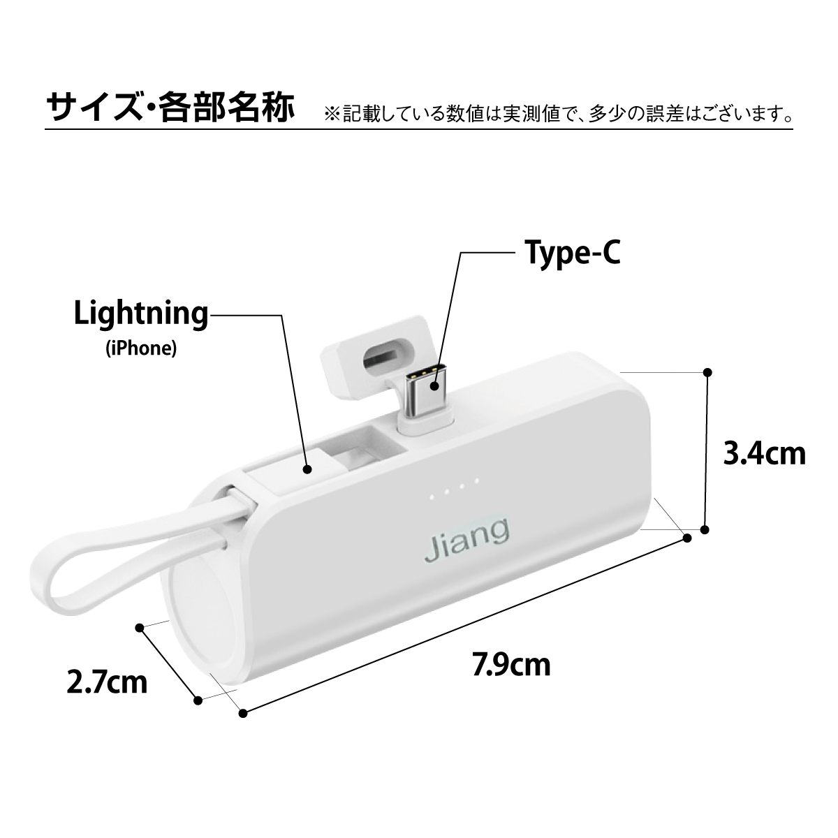Type-C iPhone 対応 小型 大容量 軽量 ケーブル内蔵 おしゃれ