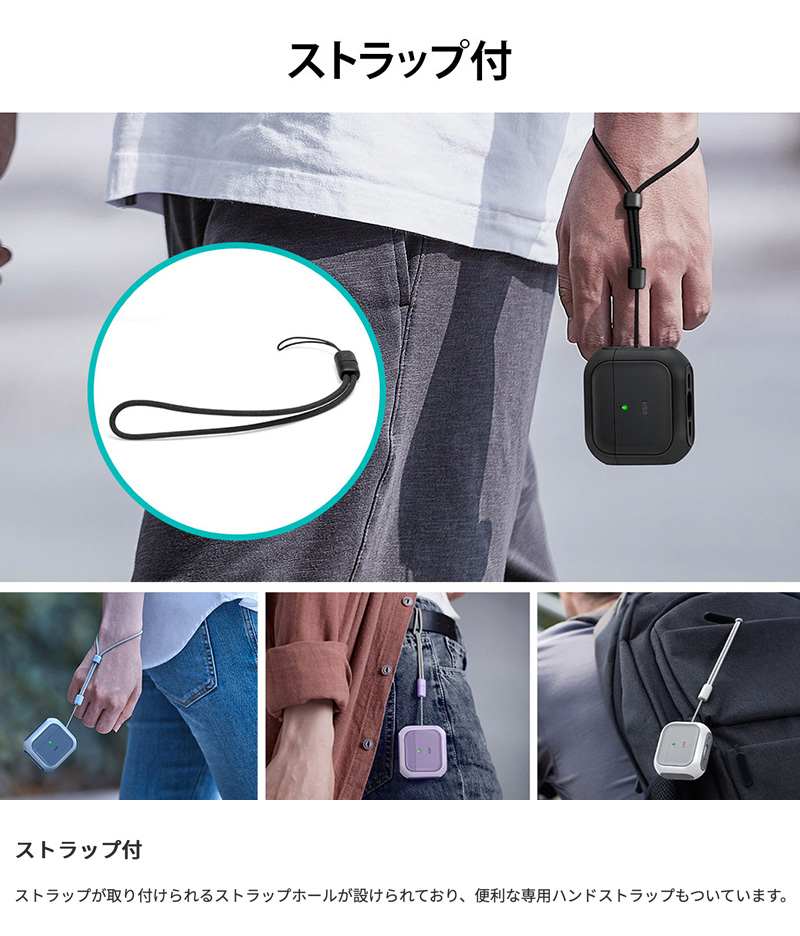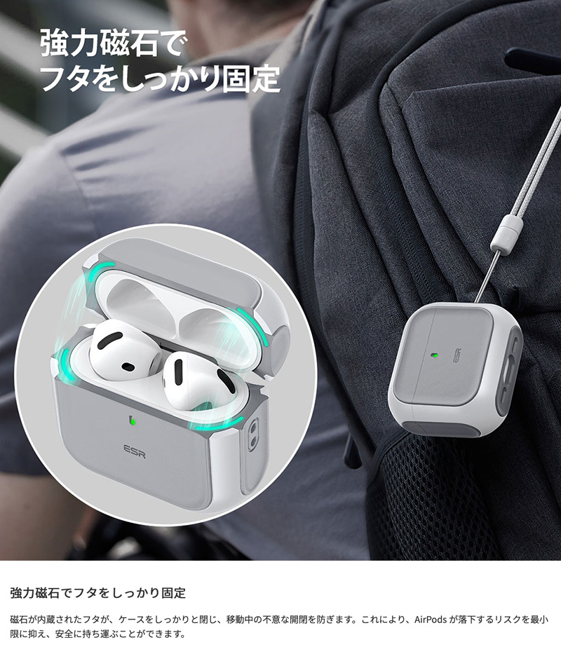 これにより、AirPods が落下するリスクを最小限に抑え、安全に持ち運ぶことができます。