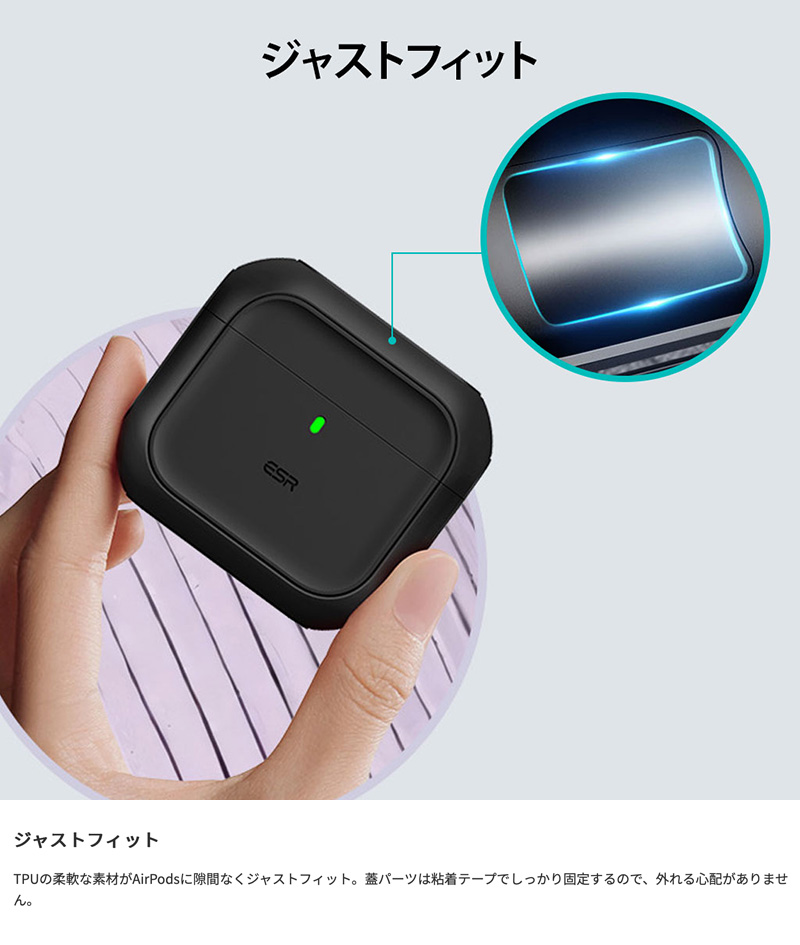 TPUの柔軟な素材がAirPodsに隙間なくジャストフィット。