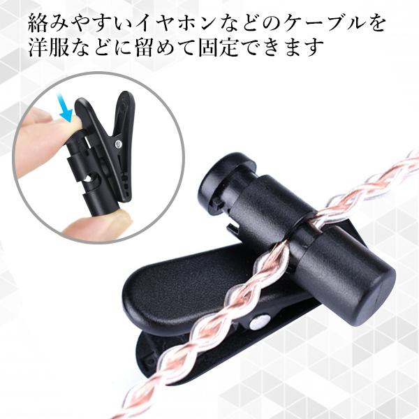 イヤホン クリップ 服 イヤホンコード 固定クリップ イヤホンケーブル ブラック 固定 インカム 携帯 マイク トランシーバー ((S