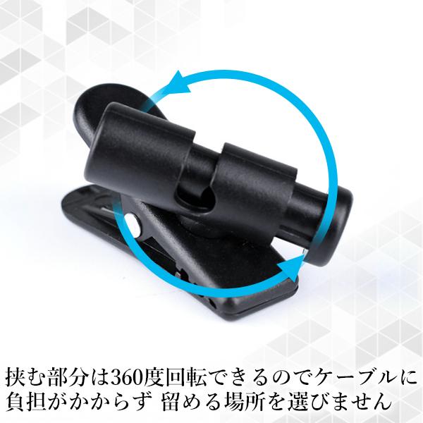 ・ケーブルを挟み込む部分は360度回転するので、留める場所を選ばず、好きな個所で使用できます。