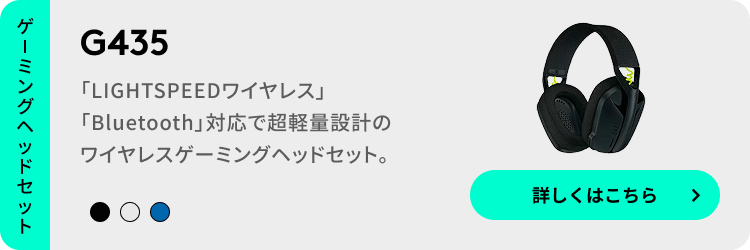 ロジクールGのゲーミングヘッドセットはG335以外にも、G435、G733などをラインナップ。サイズや重量はもちろん、ケーブルやブームマイクの有無、カラーバリエーションなど、お好みにあわせて自由に選ぶことができます。